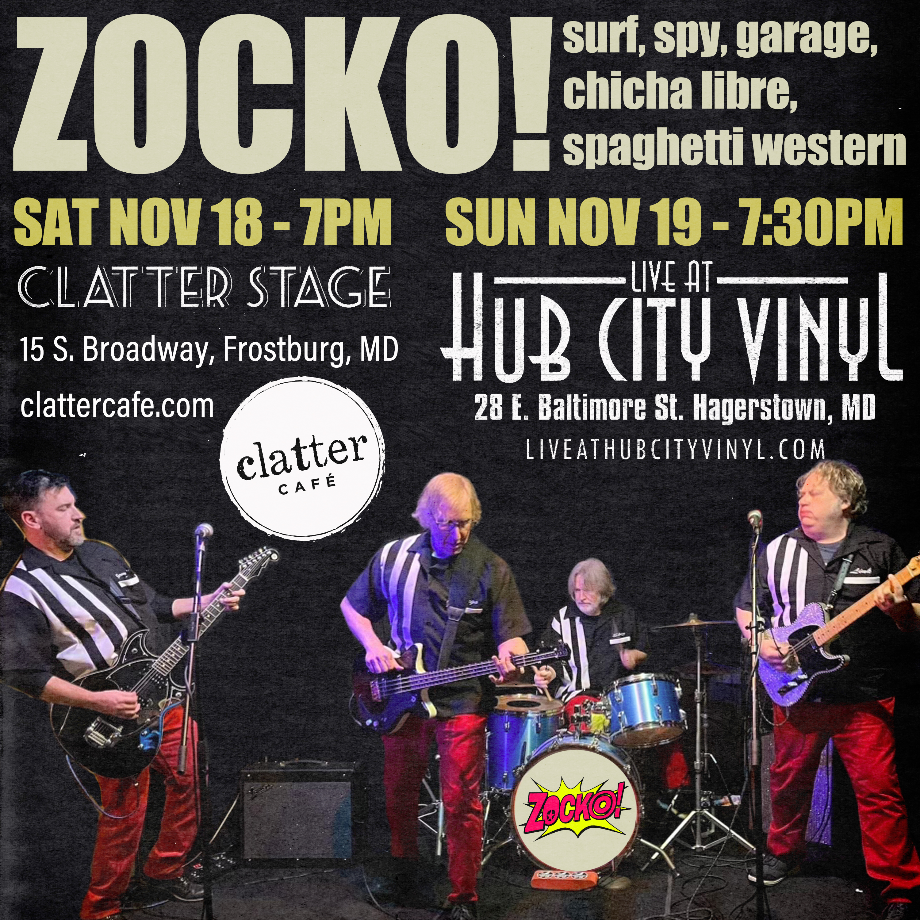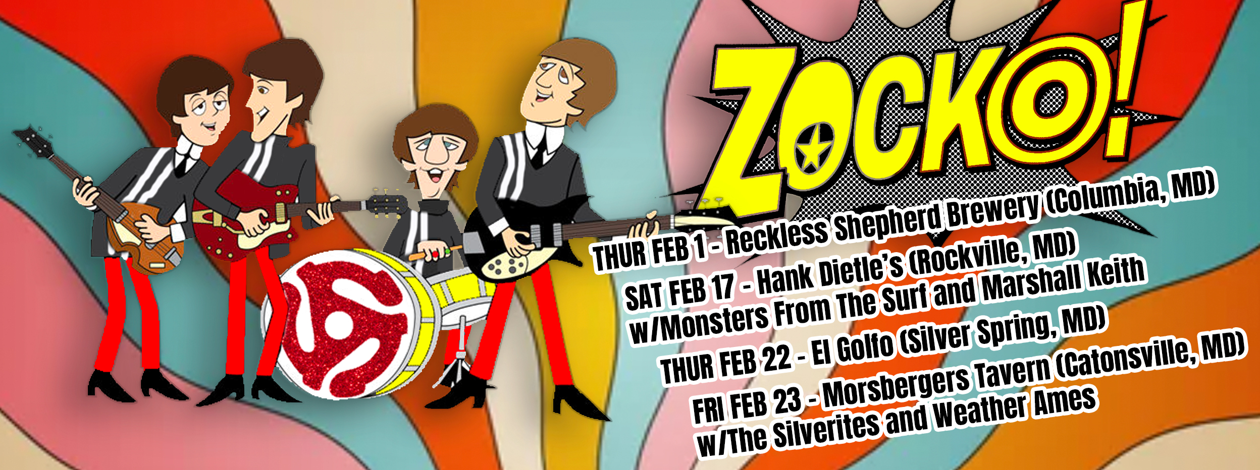 Sat Feb 17 - ZOCKO! with Monsters From The Surf and Marshall Keith at Hank Dietle's Tavern. (Rockville, MD) (Facebook event page)