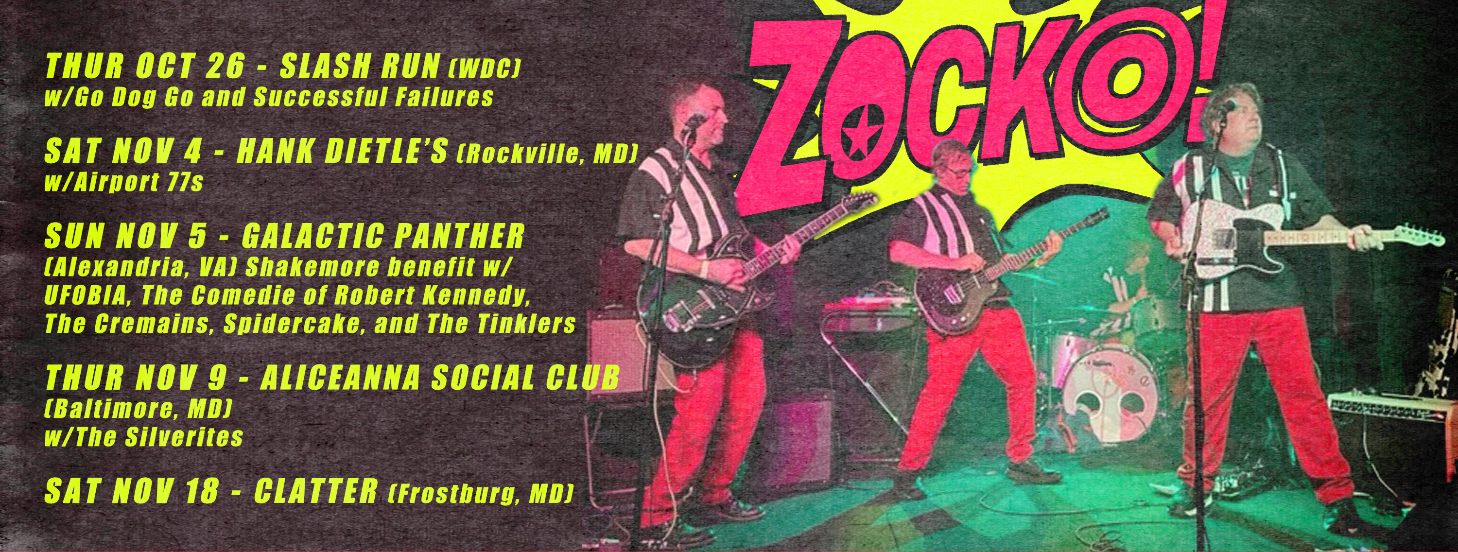 Sat Nov 2 - ZOCKO! with Apollo 66 and The Rhinestone Hecklers at American Legion Post 41. (Silver Spring, MD) (Facebook event page) CANCELLED