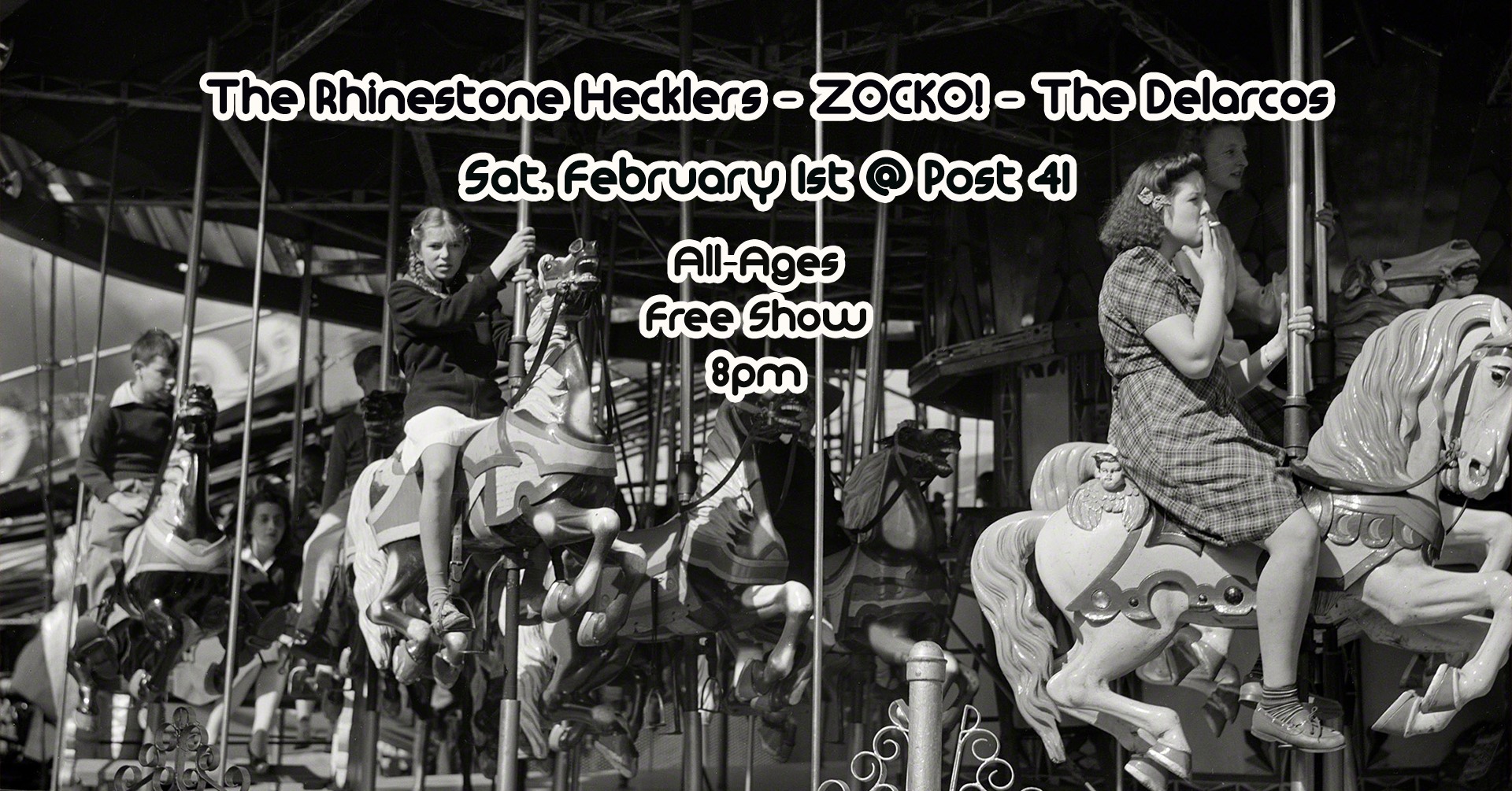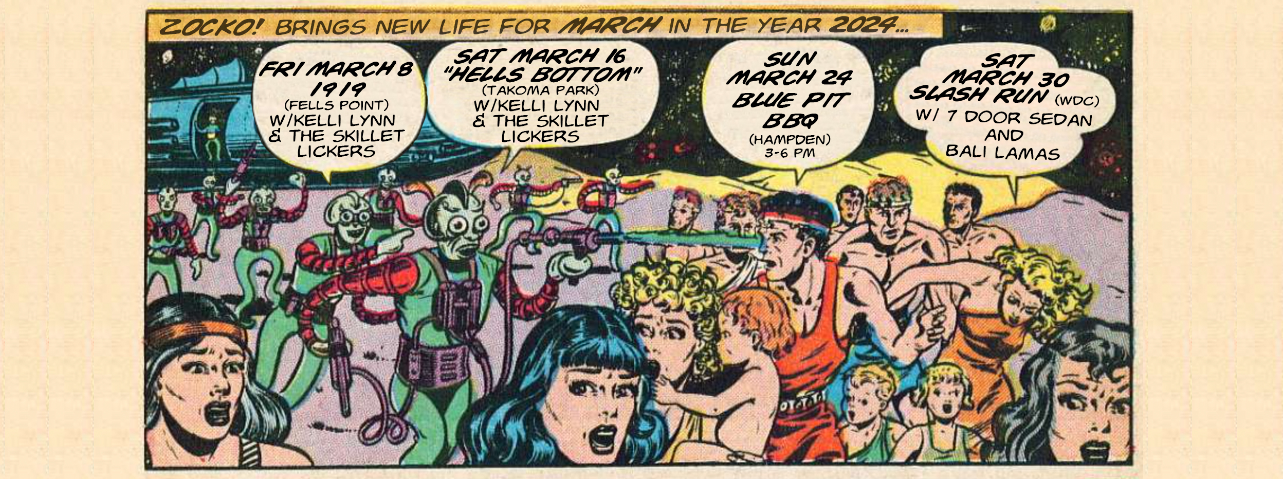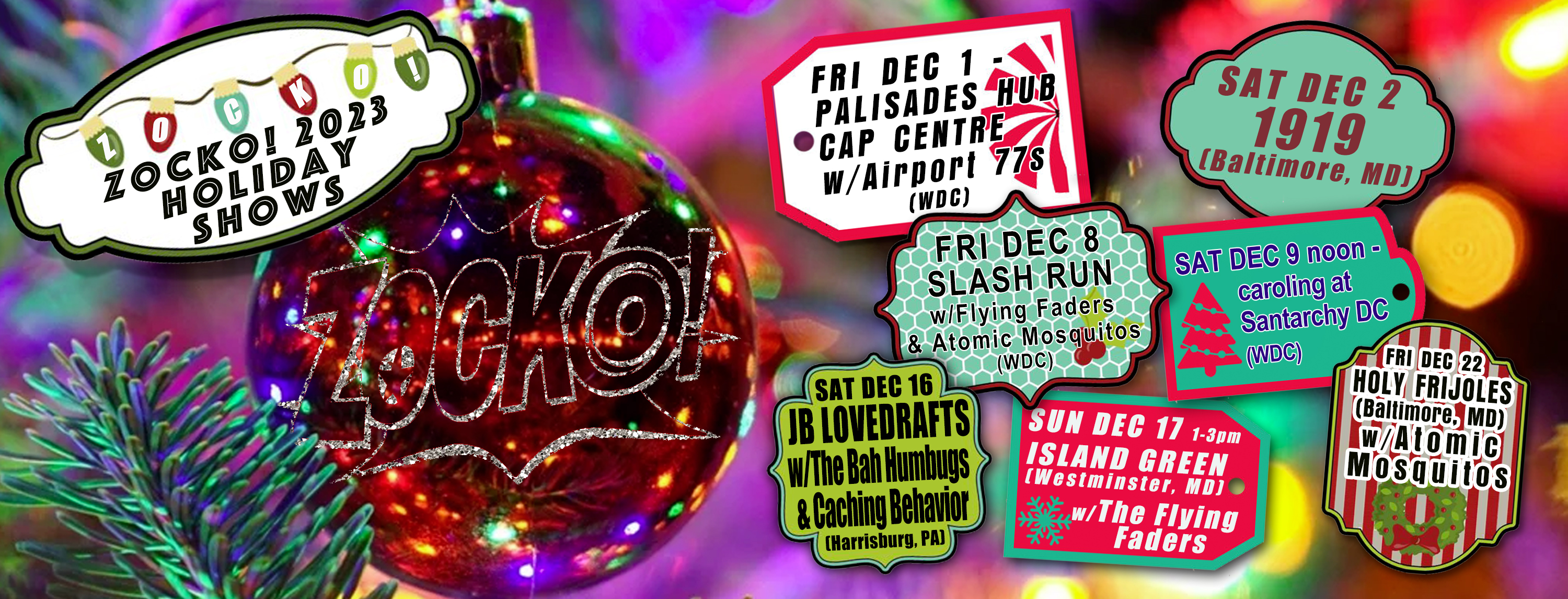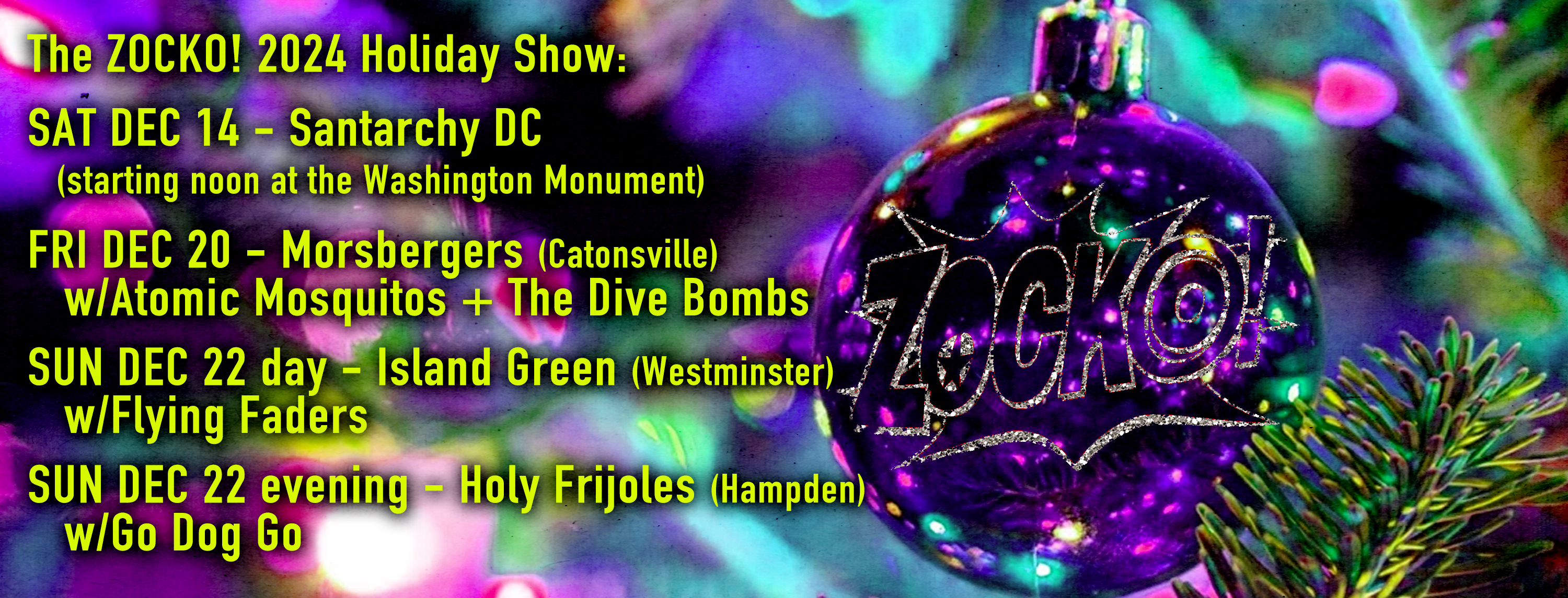 Sat Feb 1 - ZOCKO! with The Delarcos and Rhinestone Hecklers at American Legion Post 41. (Silver Spring, MD) (Facebook event page) [ZOCKO! canceled for health issue]