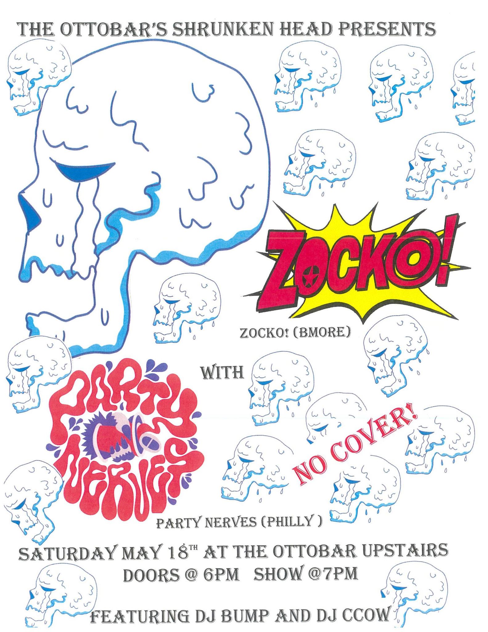 Sat May 18 - ZOCKO! and Party Nerves, plus DJ Bump and DJ CCOW, at Ottobar's Shrunken Head. (Facebook event page)