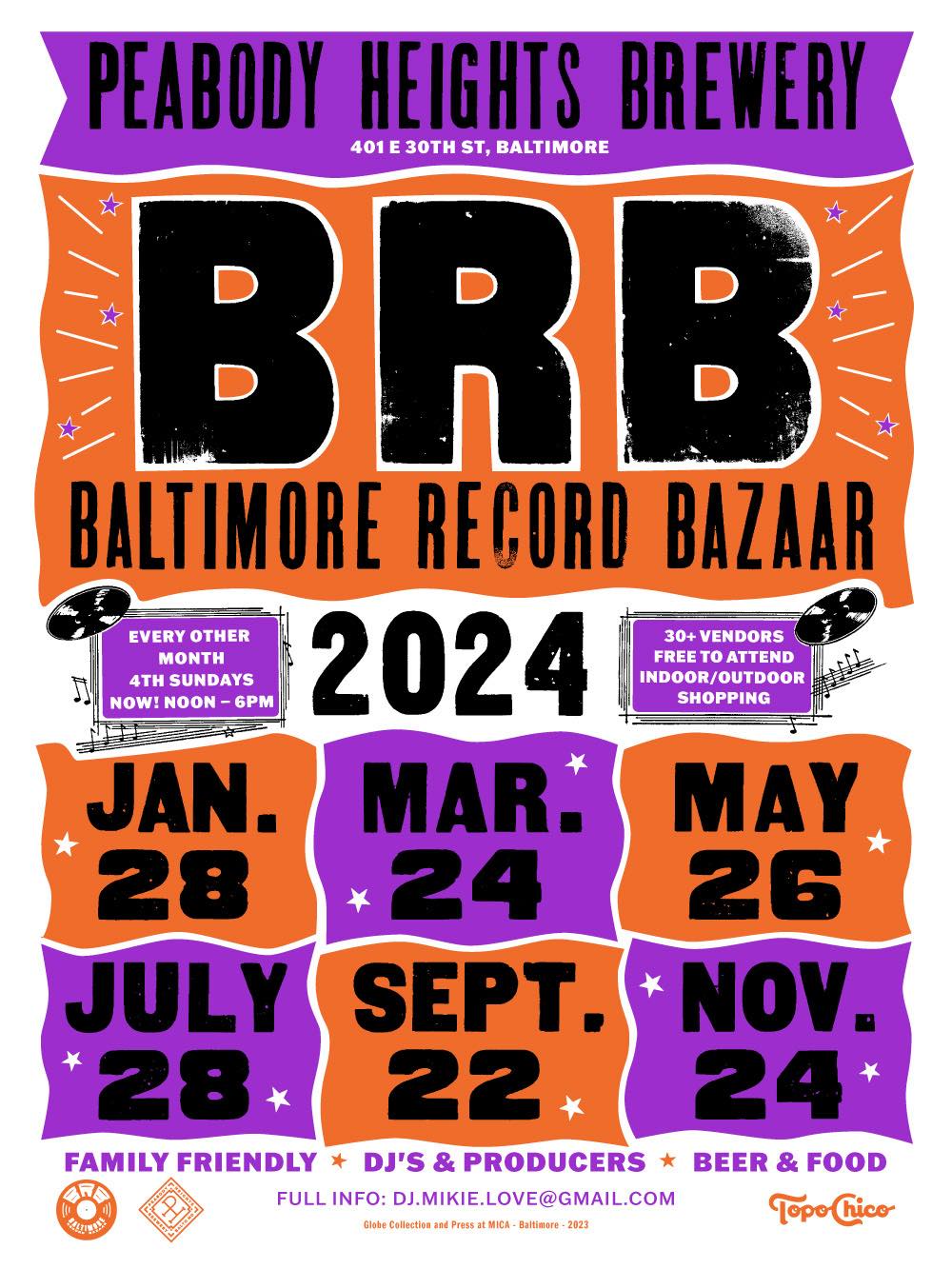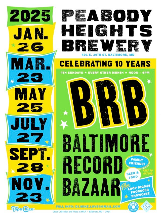 Sun March 23 - The March edition of Baltimore Record Bazaar, with DJ Skizz Cyzyk spinning vinyl from noon to 1PM, at Peabody Heights Brewery. (Facebook event page)