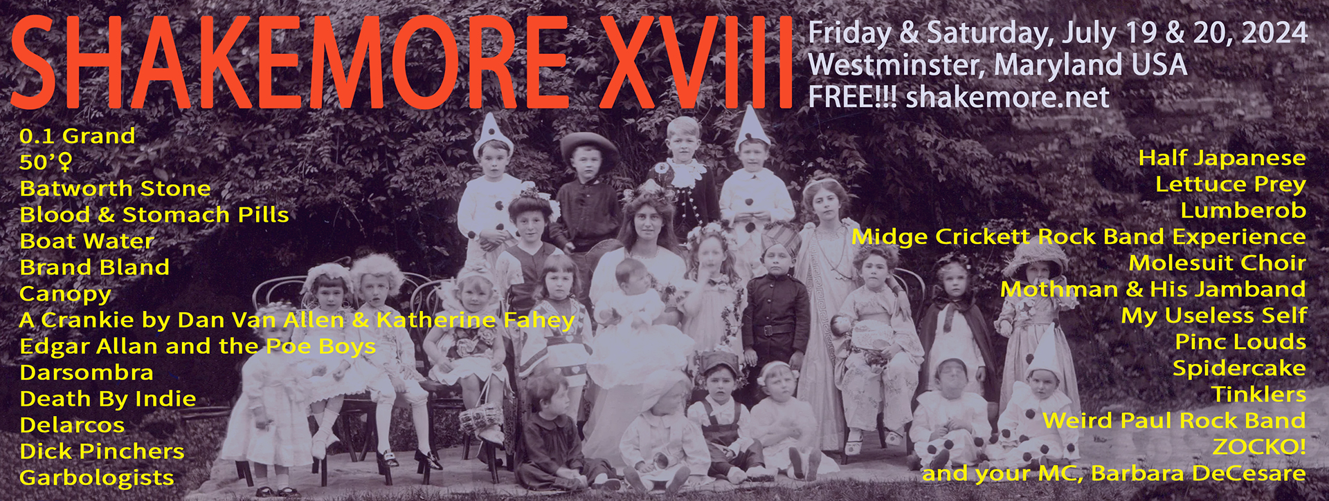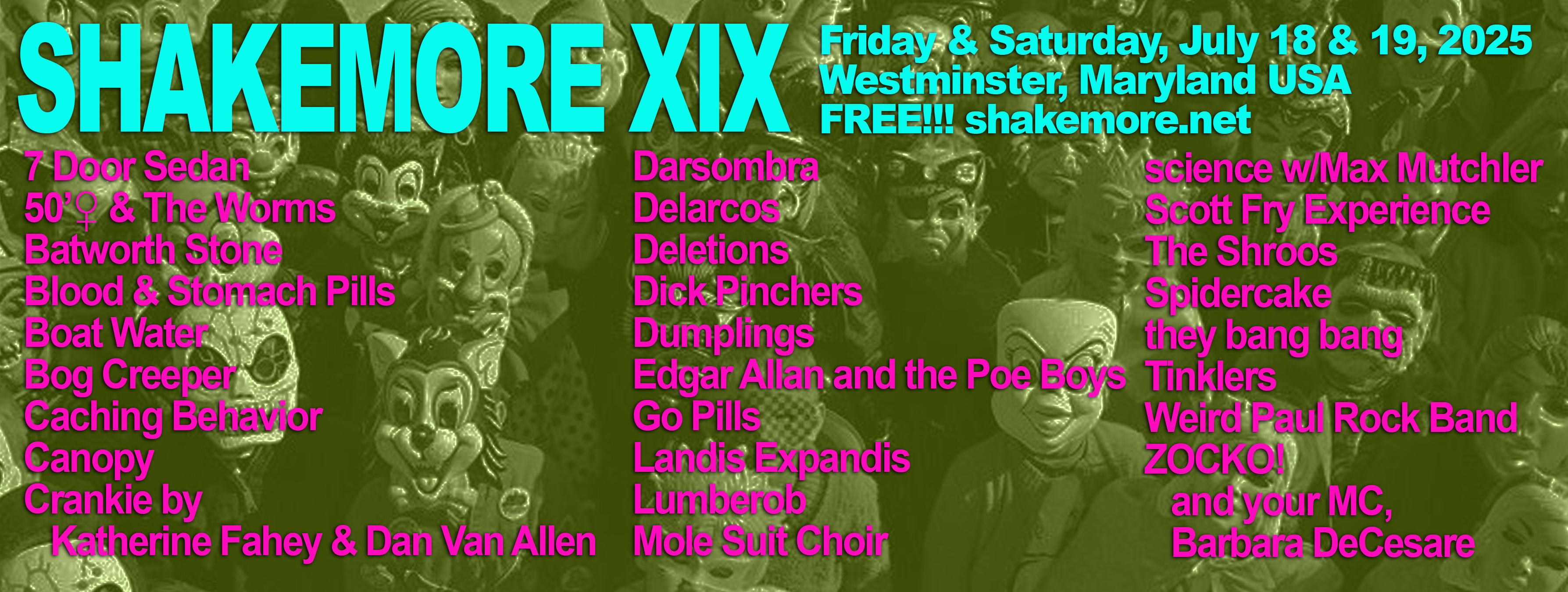 Fri & Sat, July 19 & 20 - ZOCKO! performs, and Skizz drums for Half Japanese, at the ShakeMore-Au-Go-Go festival. (Westminster, MD).