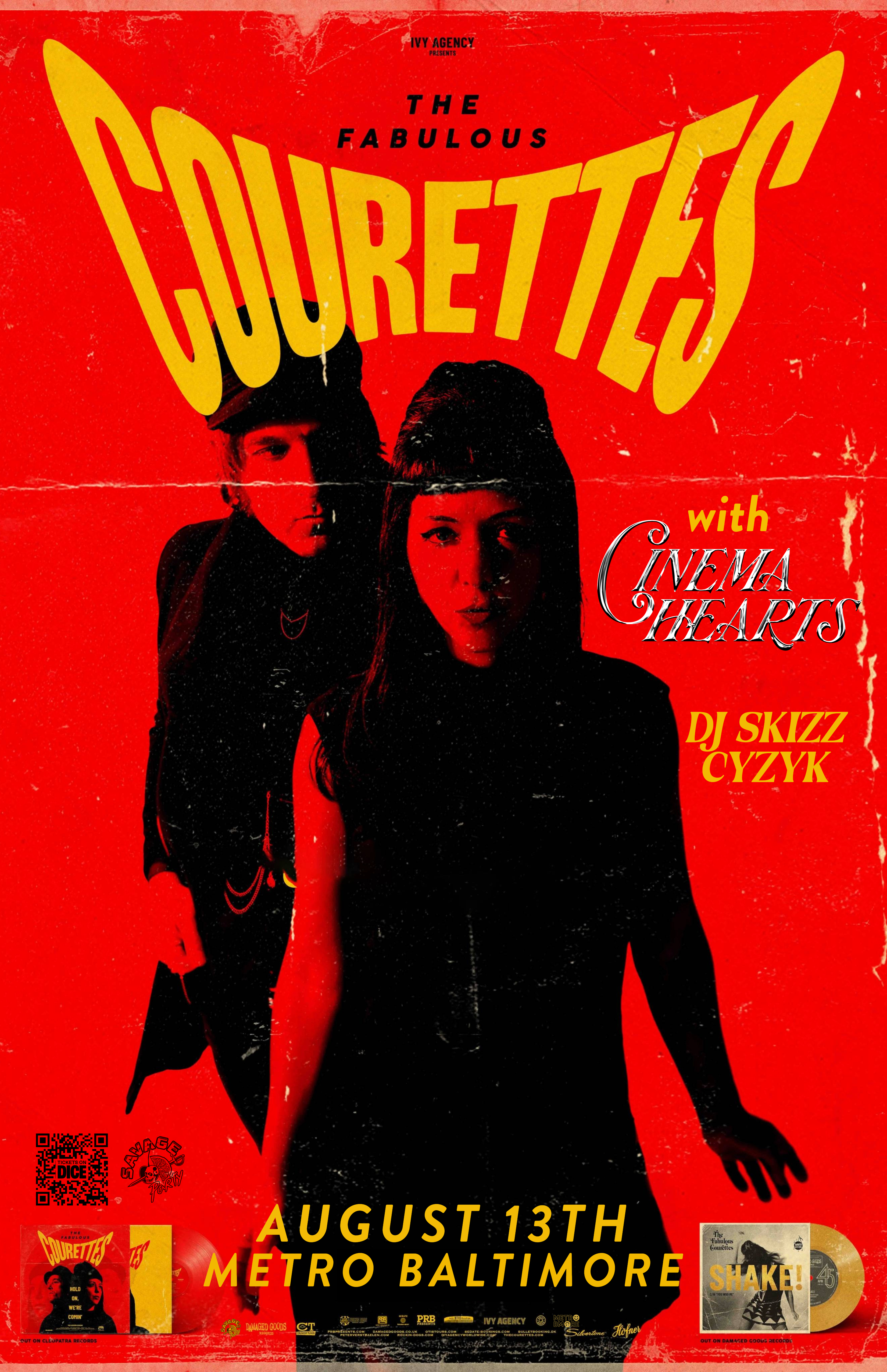 Tue Aug 13 - The Fabulous Courettes, Cinema Hearts, and DJ Skizz Cyzyk at Metro Baltimore. (Facebook event page)