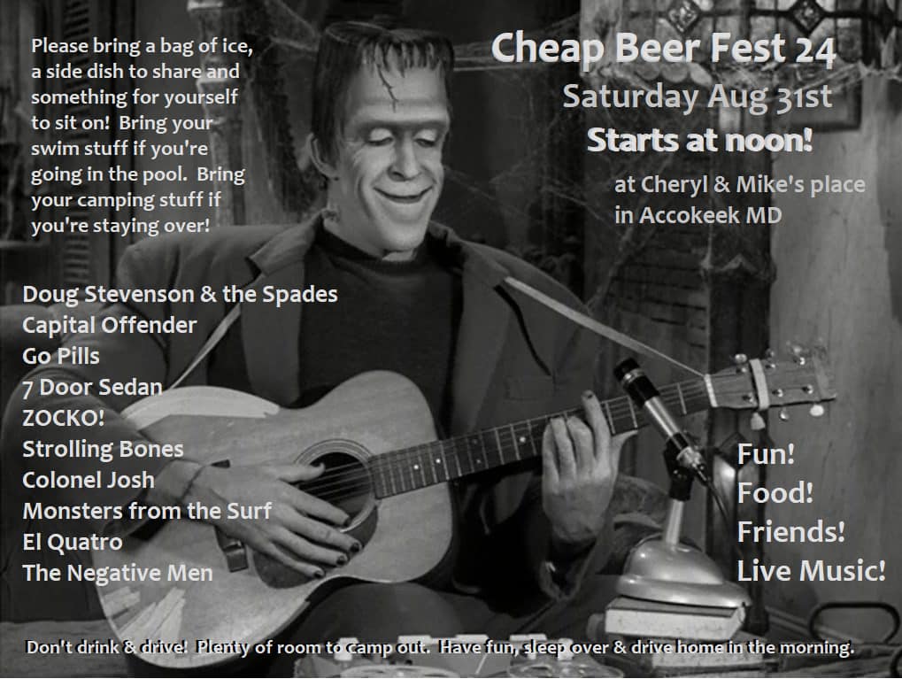 Sat Aug 31 - ZOCKO! and Go Pills perform at Cheap Beer Fest, plus Skizz fills in on drums for Monsters From The Surf. (Accokeek, MD).