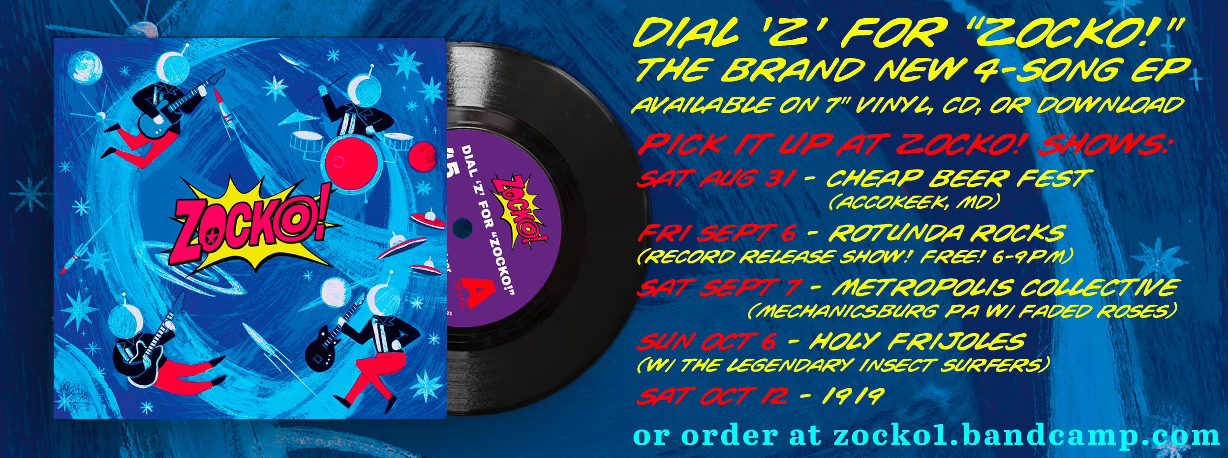 Fri Sept 6 - ZOCKO! celebrates the release of Dial 'Z' For "ZOCKO!" vinyl EP release at Rotunda Rocks Concert Series. (Facebook event page)