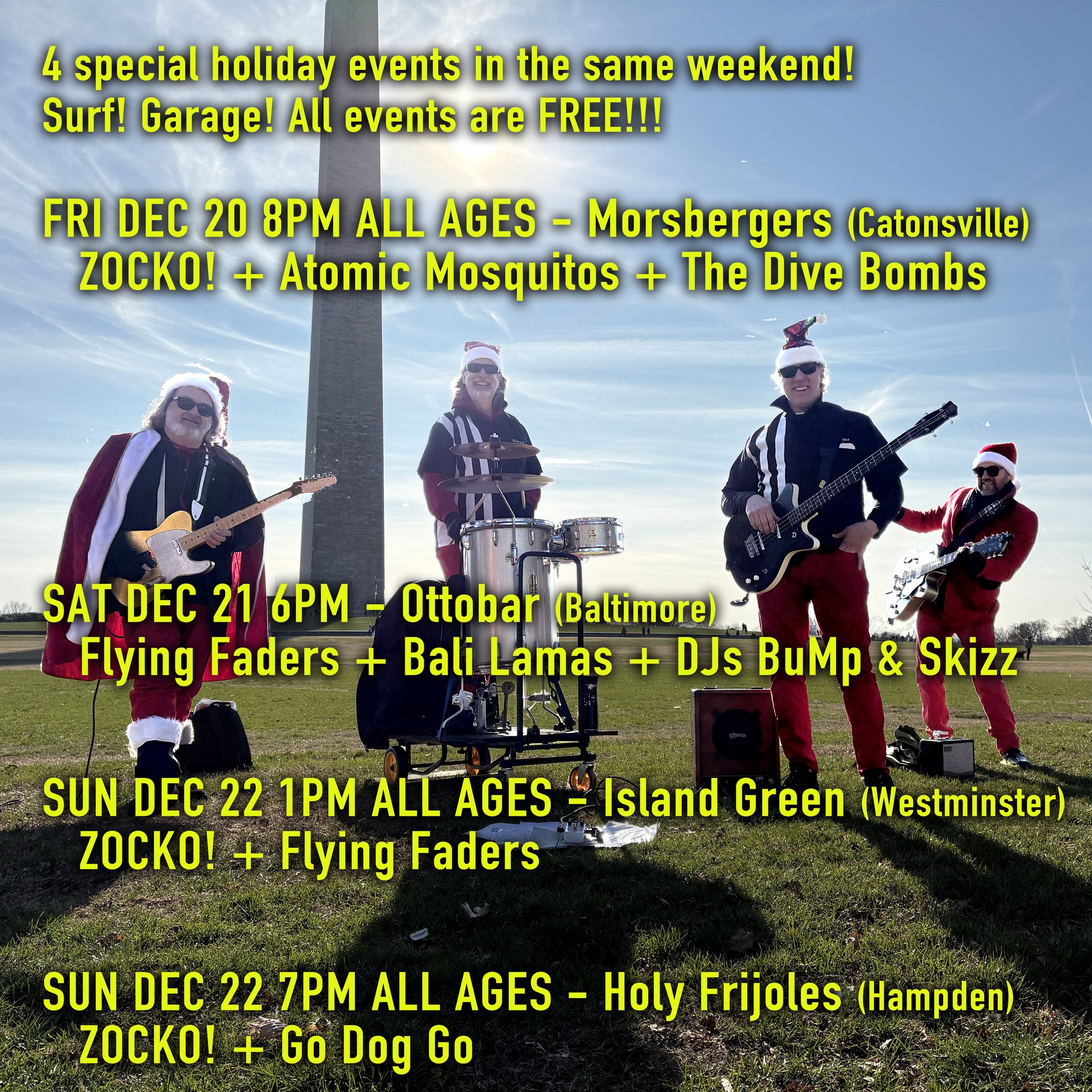 Sun Dec 22 (daytime) - ZOCKO! and Flying Faders at Island Green. 1PM (Westminster, MD) (Facebook event page)