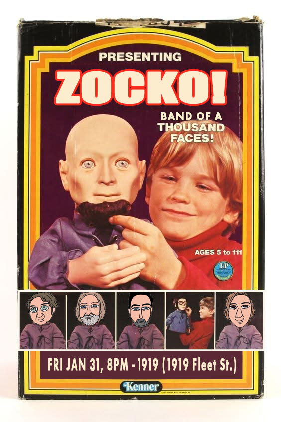Fri Jan 31 - ZOCKO! at 1919. (Facebook event page) [ZOCKO! canceled for health issue, and was replaced by DJ Skizz Cyzyk]