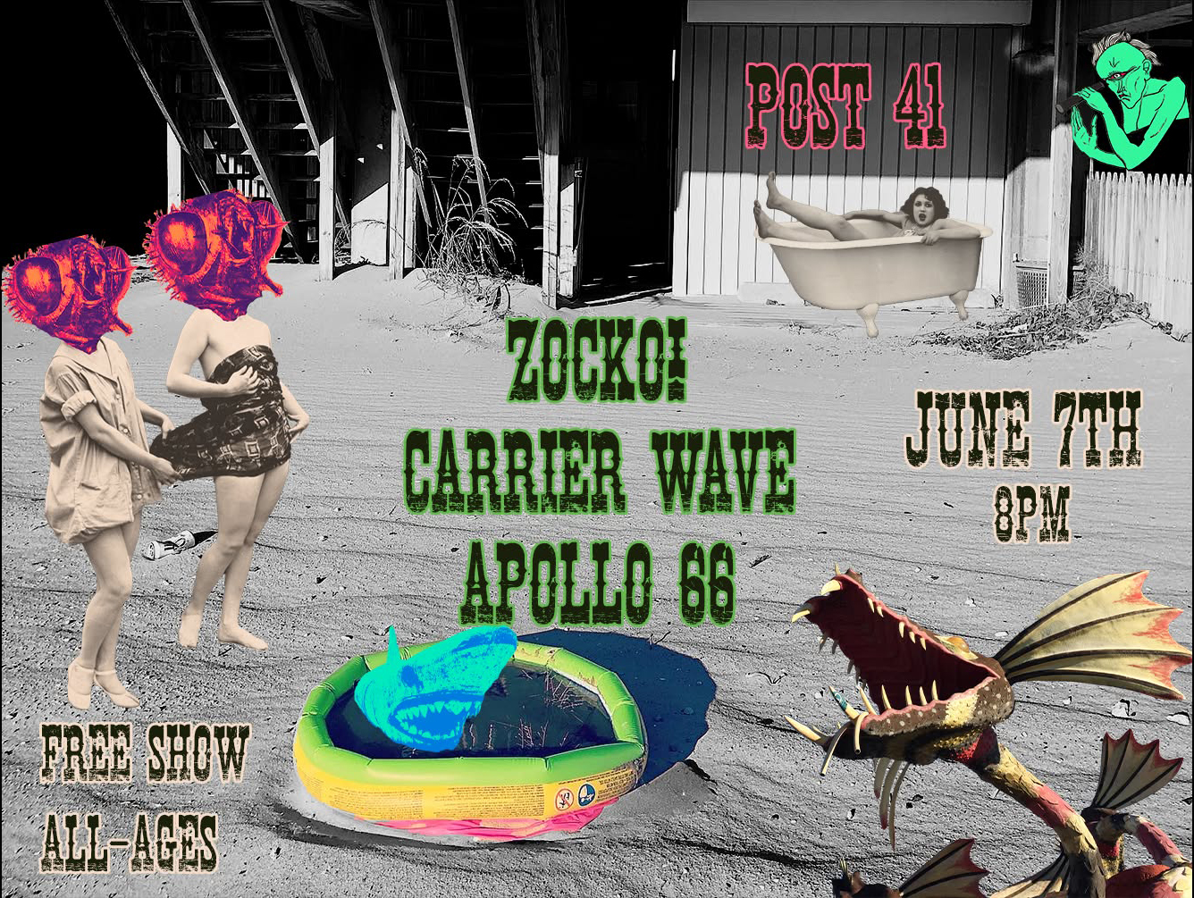 Sat June 7 - ZOCKO! with Carrier Wave and Apollo 66 at American Legion Post 41. (Silver Spring, MD) (Facebook event page)