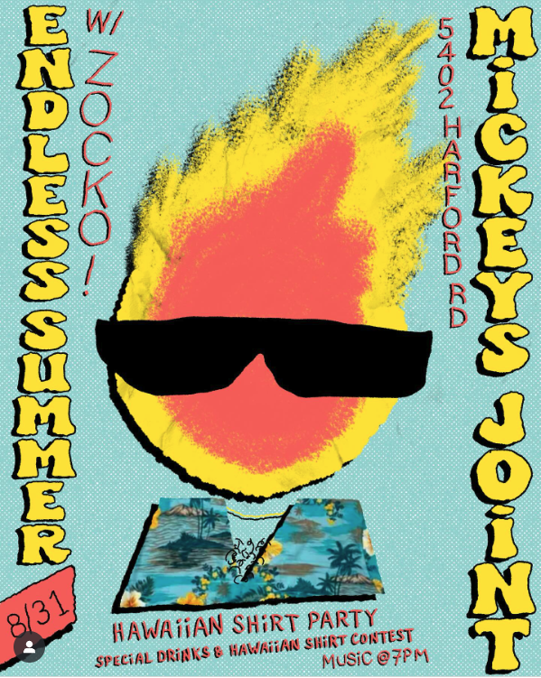 Sun Aug 31 - ZOCKO! plays a Hawaiian Shirt Party at Micky's Joint. (Facebook event page)