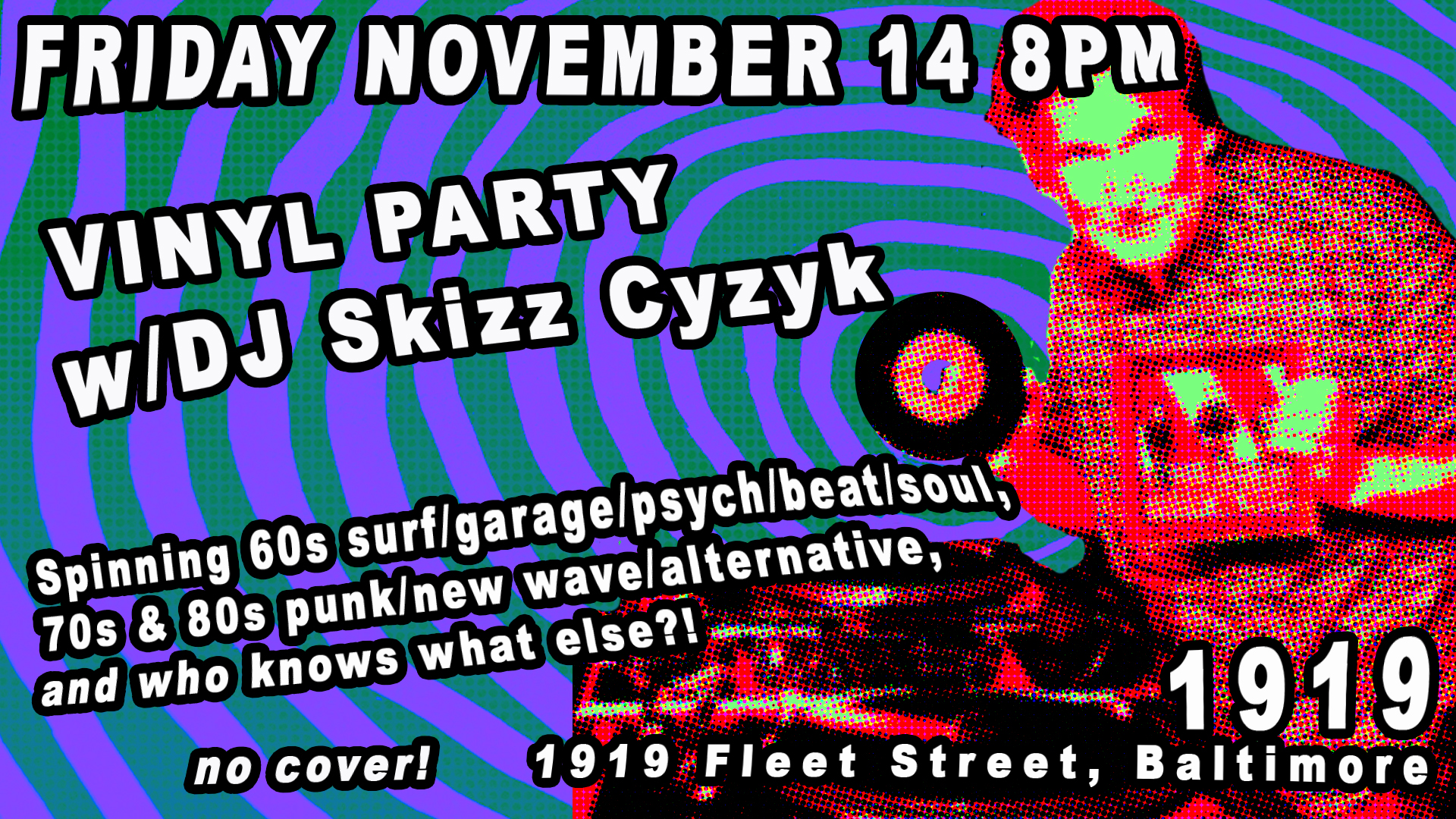 Fri Nov 14 - Vinyl Party with DJ Skizz Cyzyk, at 1919. (Facebook event page)