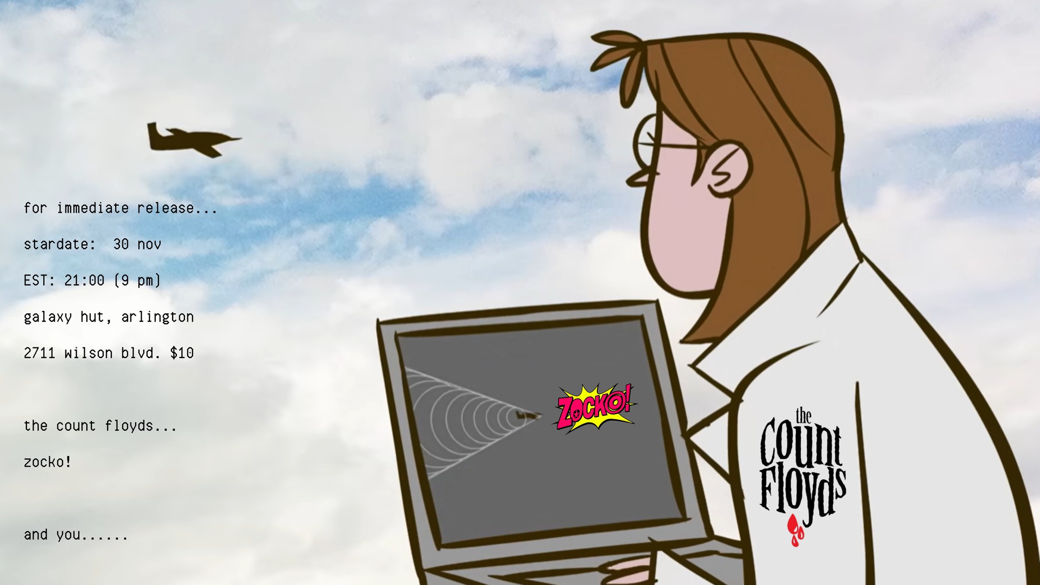 Sun Nov 30 - ZOCKO! and The Count Floyds (debut show!) at Galaxy Hut. (Arlington, VA) (Facebook event page)