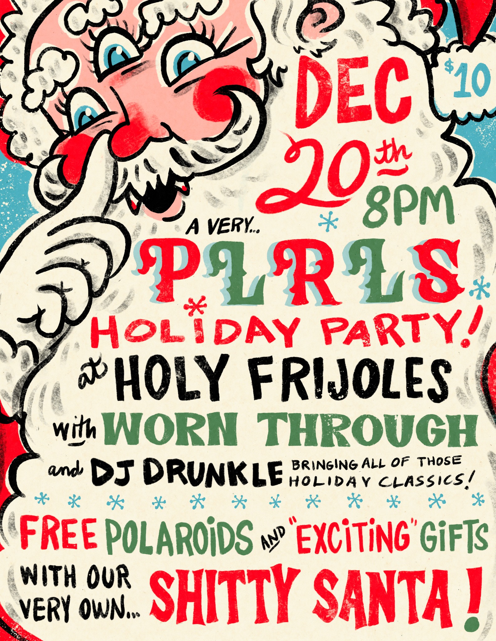 Sat Dec 20 - A Very PLRLS Holiday Party w/Worn Through, Shitty Santa, and DJ Drunkle (who looks very familiar) at Holy Frijoles. (Facebook event page)