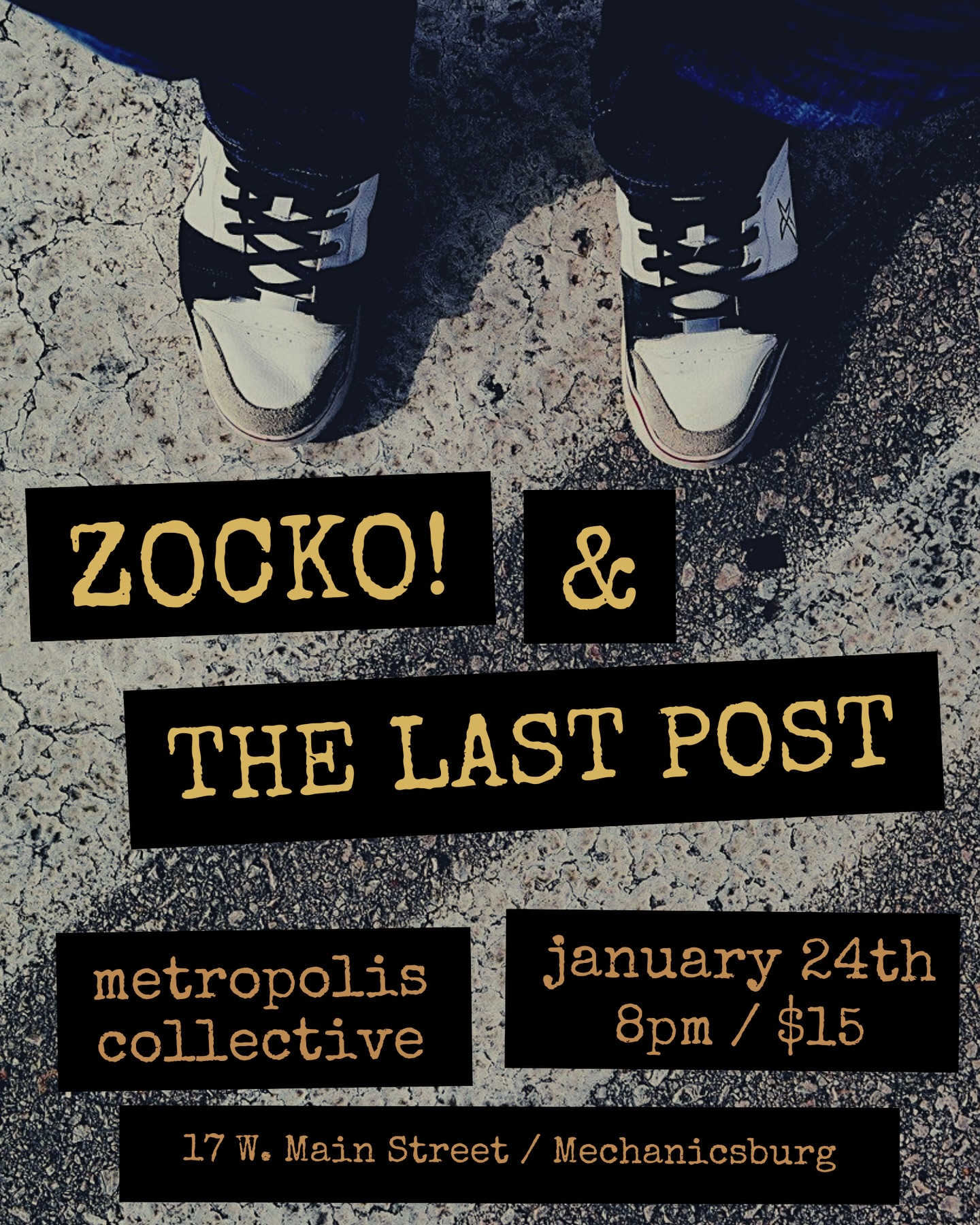 Sat Jan 24 - ZOCKO! and The Last Post at Metropolis Collective. (Mechanicsburg, PA) (Facebook event page) [SHOW CANCELED due to Winter Storm Fern.]
