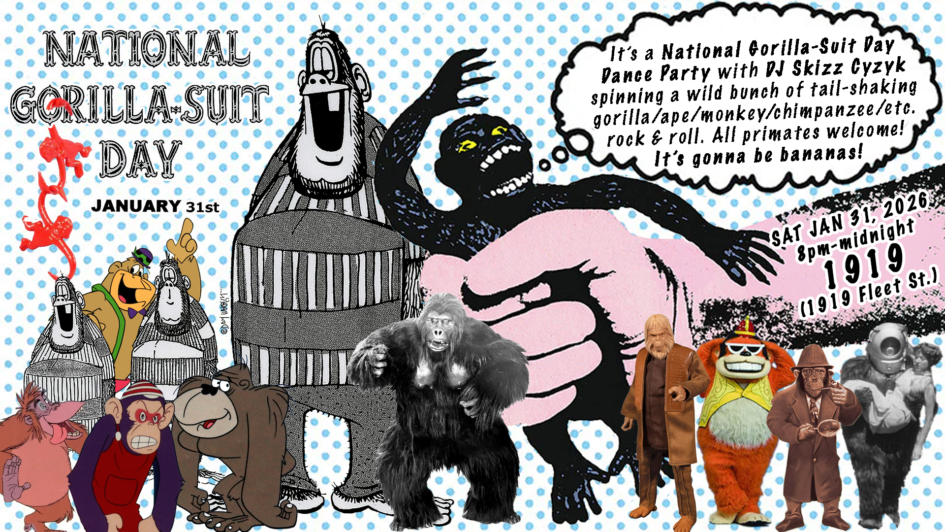 Sat Jan 31 - National Gorilla Suit Day dance party with DJ Skizz Cyzyk, at 1919. (Facebook event page)