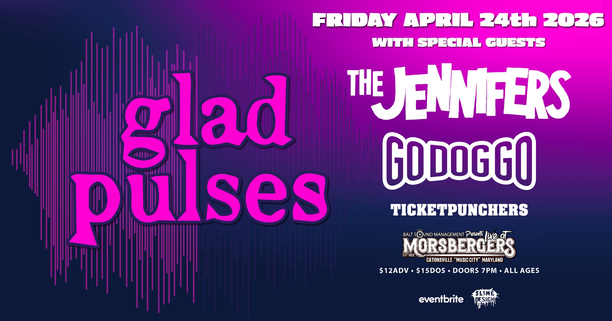 Fri April 23 - The Jennifers with Glad Pulses, Go Dog Go, and Ticketpunchers at Morsbergers Tavern. (Facebook event page)