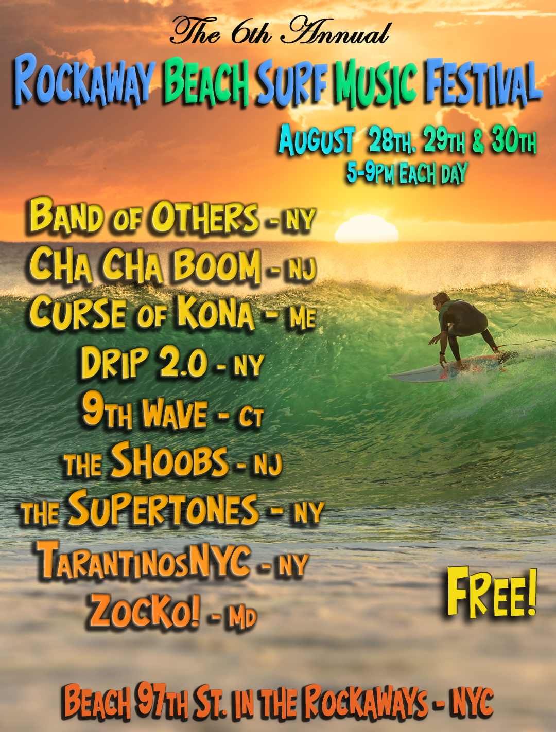 Aug 28-30 - ZOCKO! at Rockaway Beach Surf Music Festival. (Queens, NY)